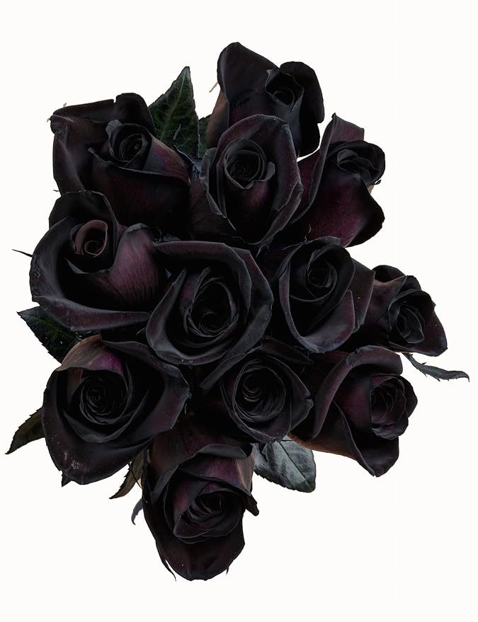 Amazon Com Black Roses Bouquet By Flower Explosion Real Fresh Tinted Black Roses 12 Stems Grocery Gourmet Food