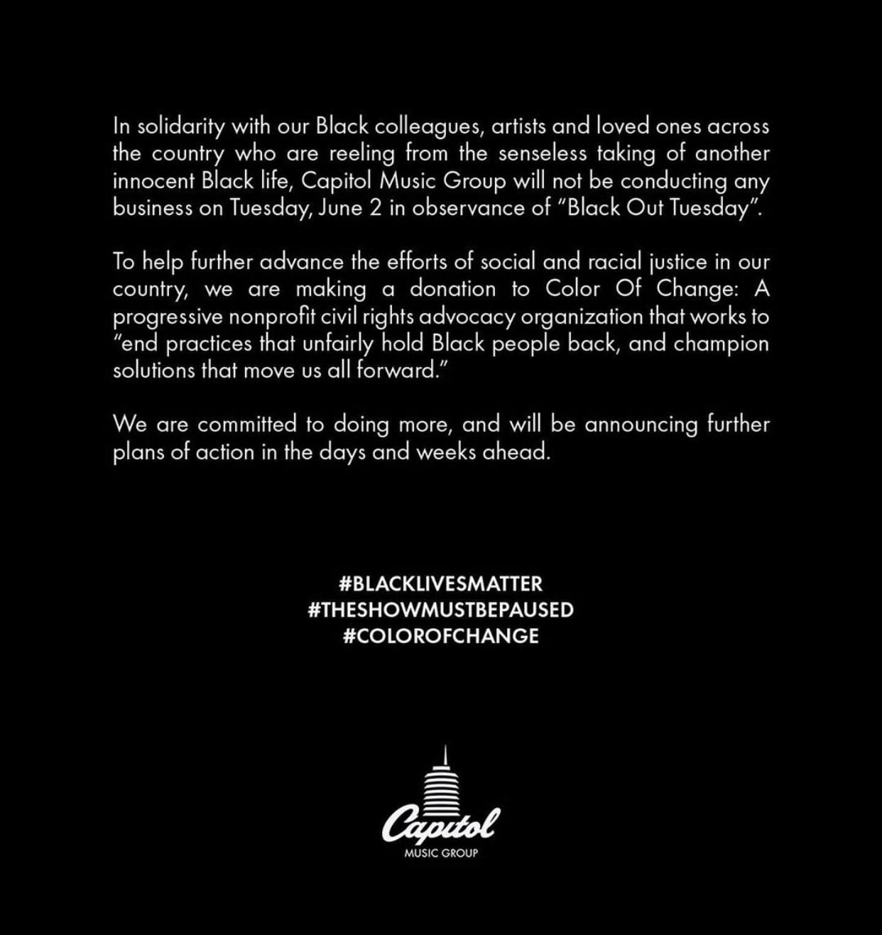Music Industry To Hold Black Out Tuesday In Solidarity With Black Community Capital