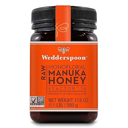 Amazon Com Wedderspoon Raw Premium Manuka Honey Kfactor 16 Unpasteurized Genuine New Zealand Honey Multi Functional Non Gmo Superfood 17 6 Ounce Grocery Gourmet Food
